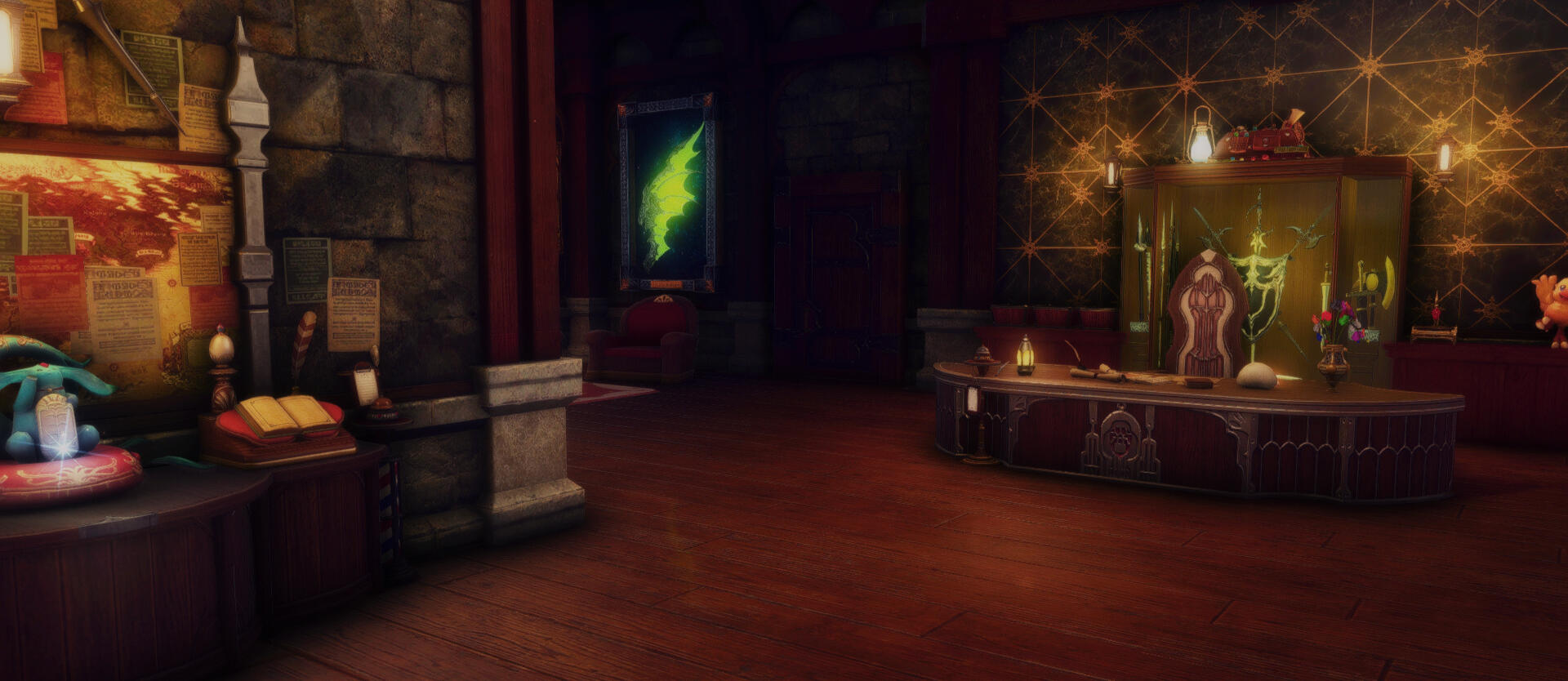 The Tonberry's Attic offers a unique blend of adorable charm and danger, combining a cozy atmosphere with potential peril. Guests can enjoy the comfort of a large bed, crafting station, and a fireplace, creating a welcoming and inviting space. However, the presence of Tonberries, infamous for their propensity to attack, adds an element of suspense and excitement to the experience. Visitors must tread carefully in this playful yet perilous room, balancing the allure of relaxation with the need to stay vigilant in the face of potential danger from these mischievous creatures.