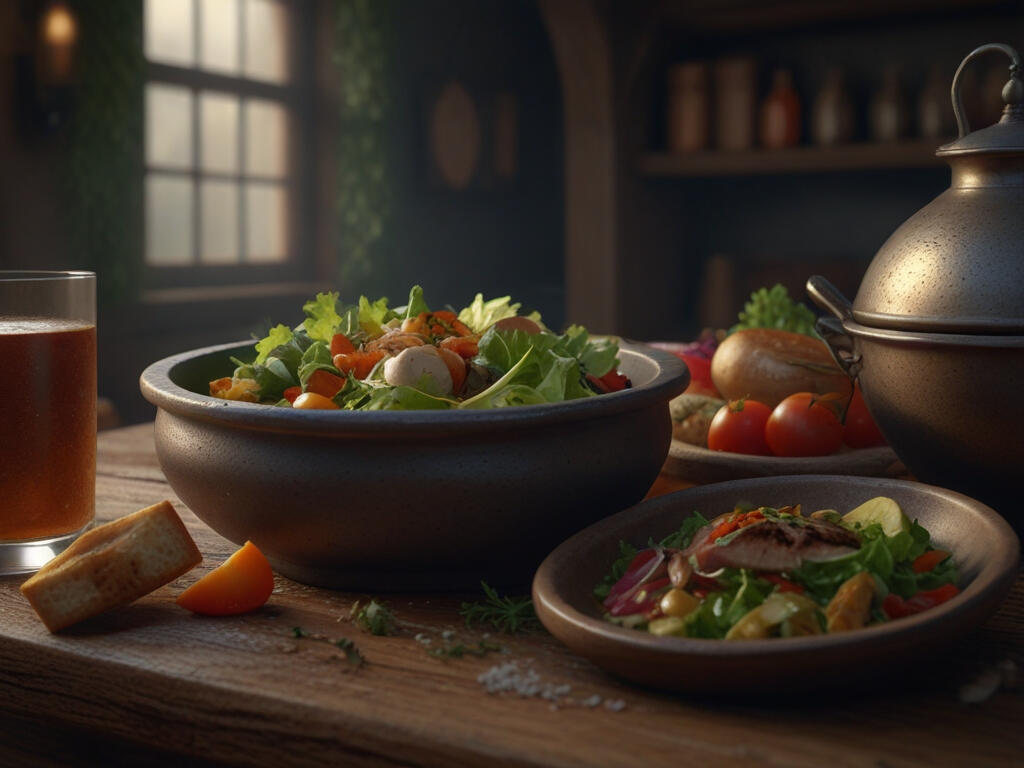 A hearty bouillon soup filled with sweet onions, covered with shredded cheese and baked in an oven until golden brown. A hard, leavened rye bread traditionally eaten by the knights of Ishgard.GINGER SALAD